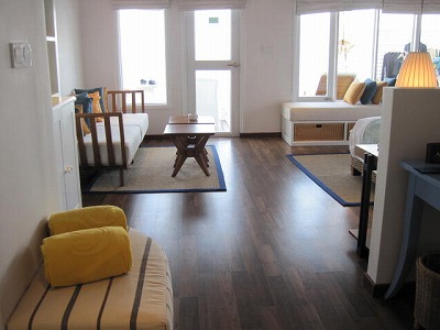 部屋から広い広いべランダが続き