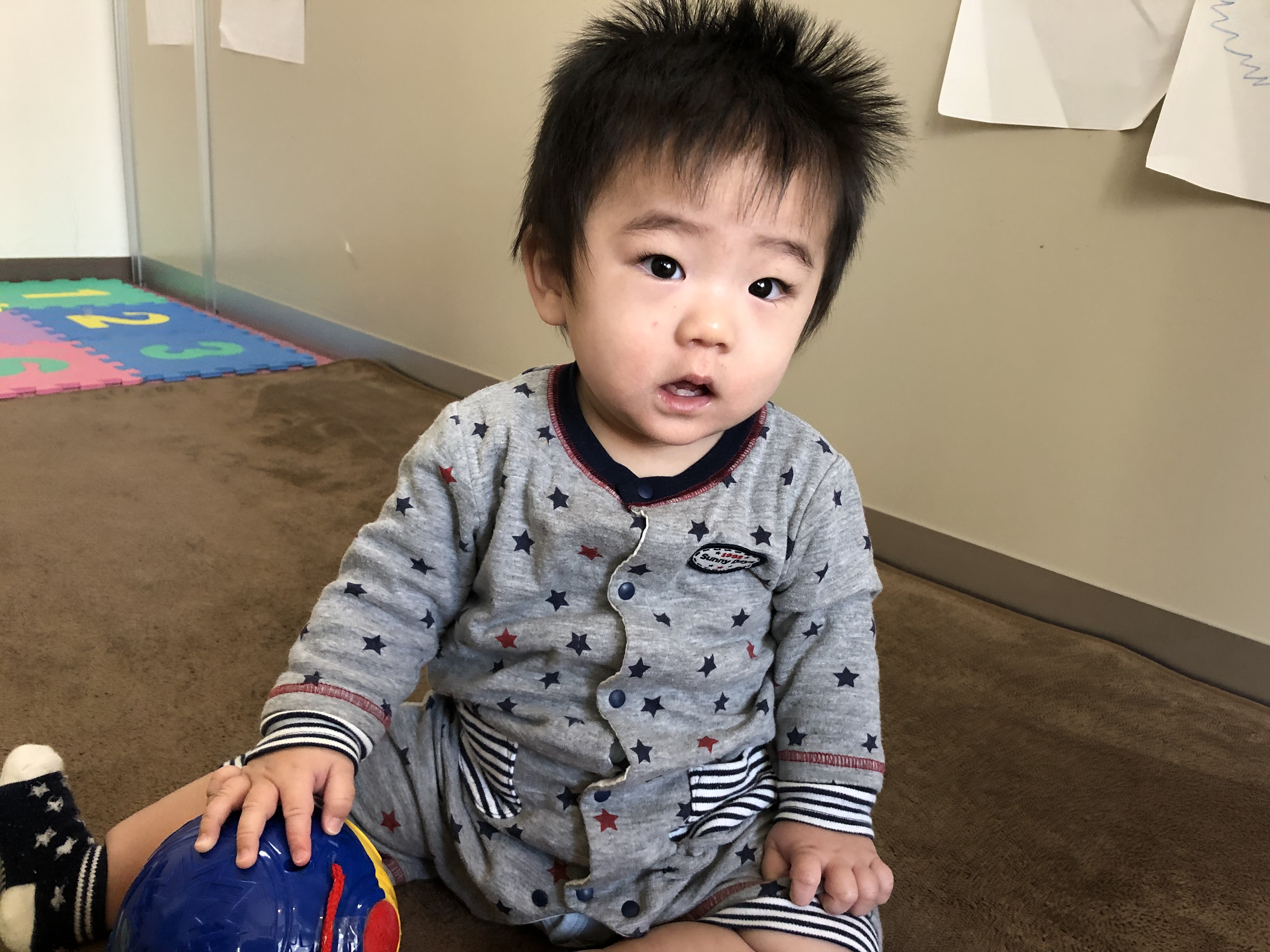 おもちゃで遊ばれたり、ハイハイしながら色んな物を見つけに行かれ興味を持たれていました(^O^)/