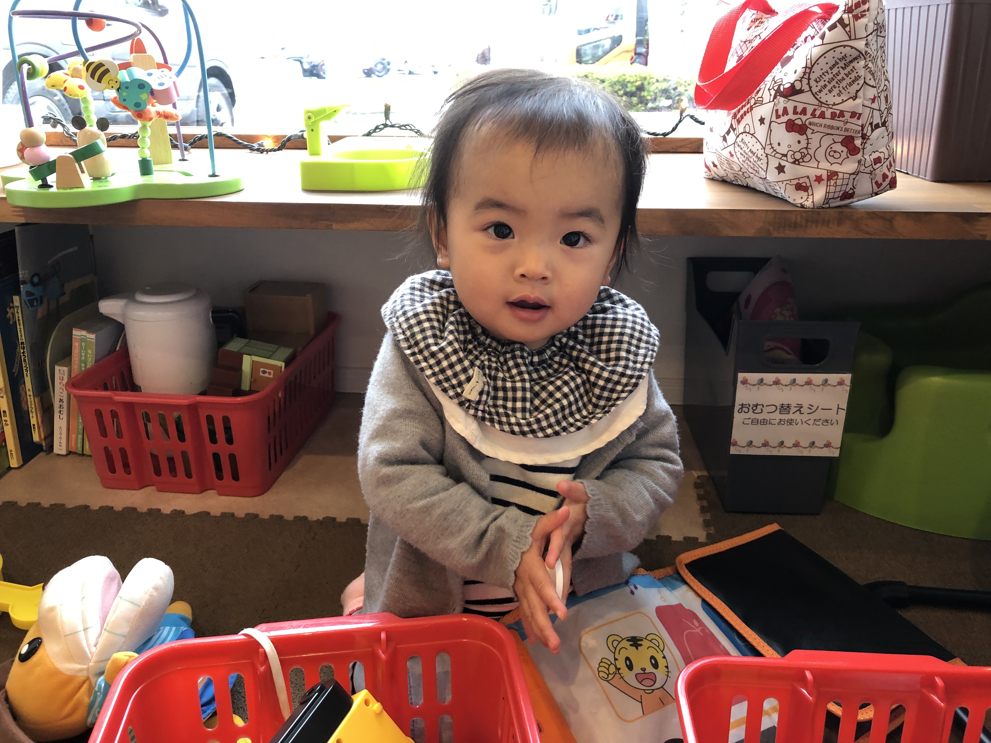 Aちゃんが初めての場所で不安で涙してしまうかとママが心配されていましたが、おもちゃで夢中になって遊ばれ、私にもすぐに慣れてくれて楽しくママを待つことができました♡