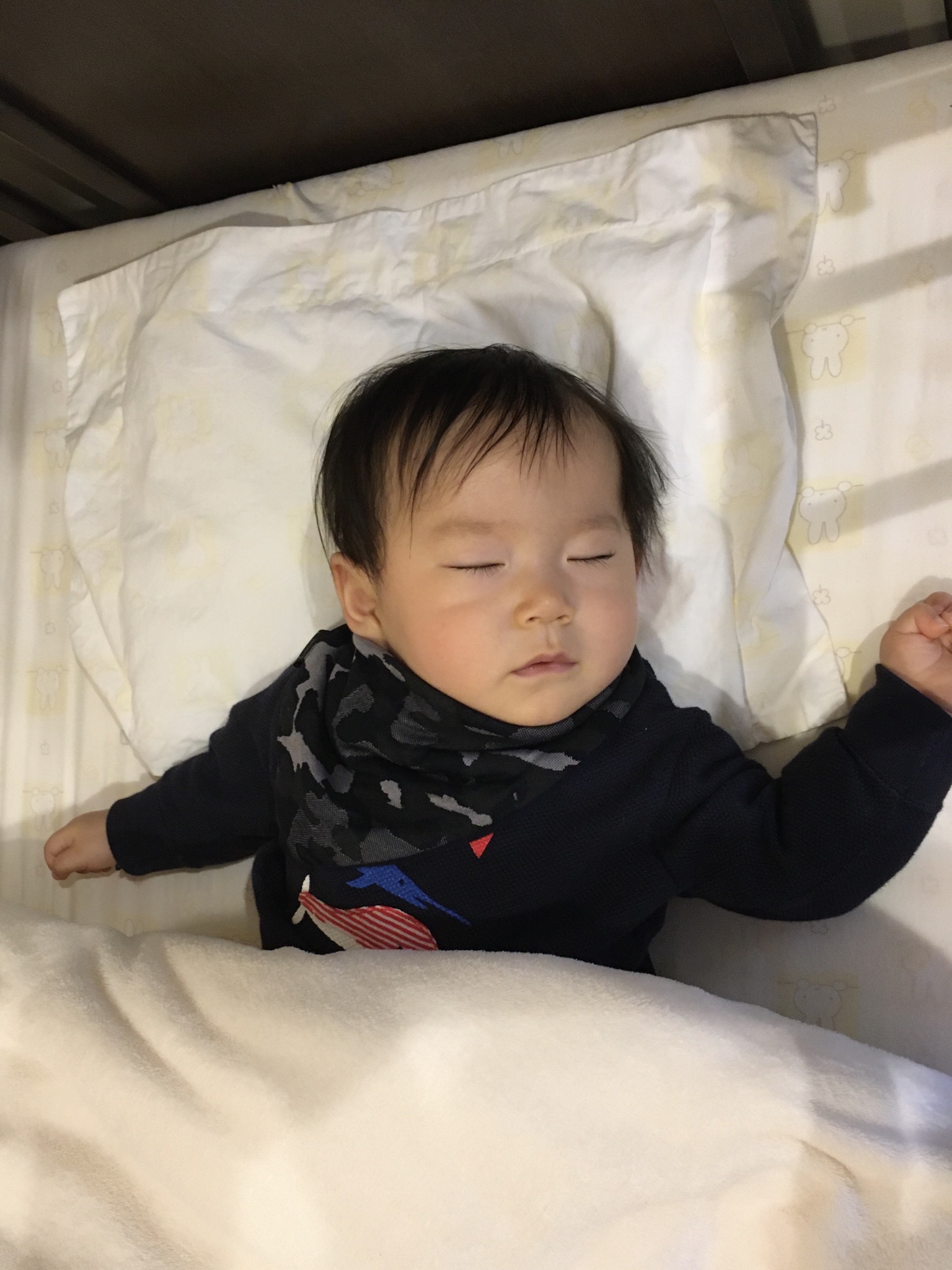 8ヶ月になられ、ママと離れると寂しくなられるようで涙がでましたが、いないいないばあのお歌を聞きながら抱っこで待っていると夢の中へ〜♪