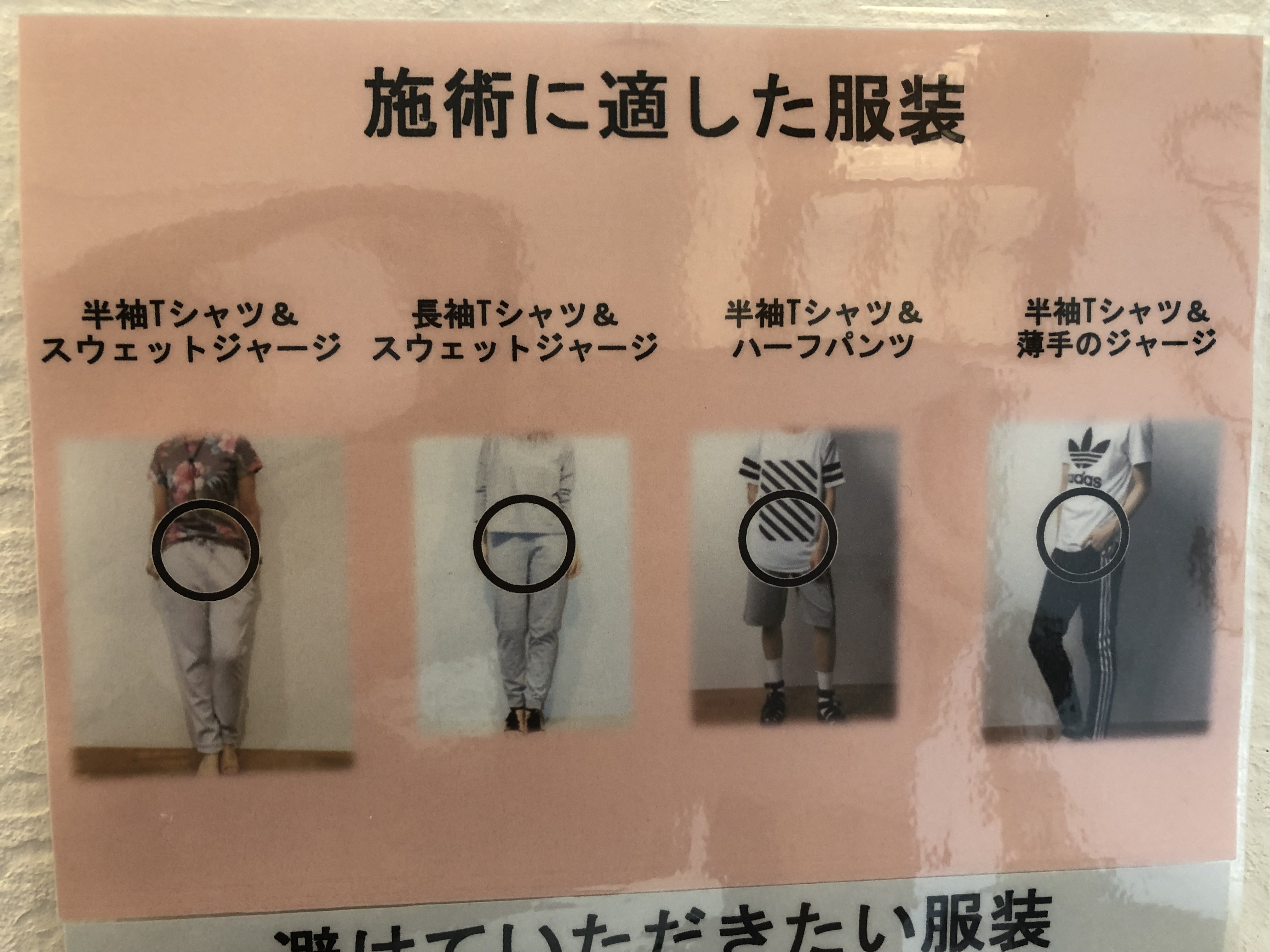 寒くなるとタートルネックやセーターなど厚手の服を着用されますが、施術の際はTシャツとジャージが適しています!