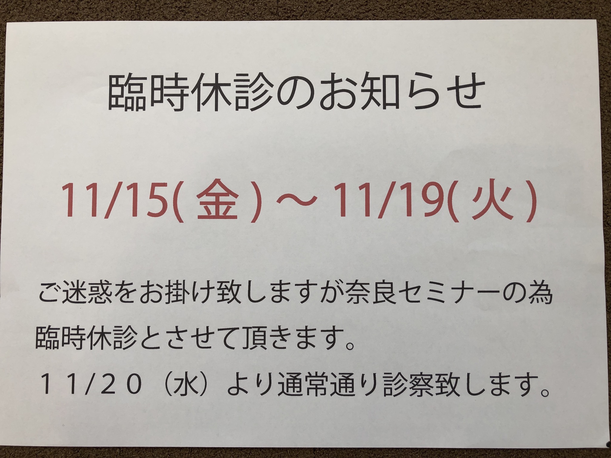 ポートカイロは、明日11/15(金)~11/19(火)までセミナーの為、臨時休診させて頂きますm(__)m