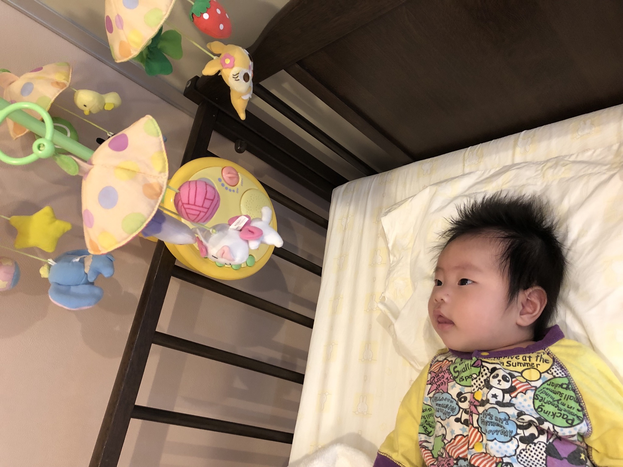 ベットのメリーを眺めたり、自分でしまじろうのおきあがりこぼしを揺らして上手に遊ばれていました(#^.^#)