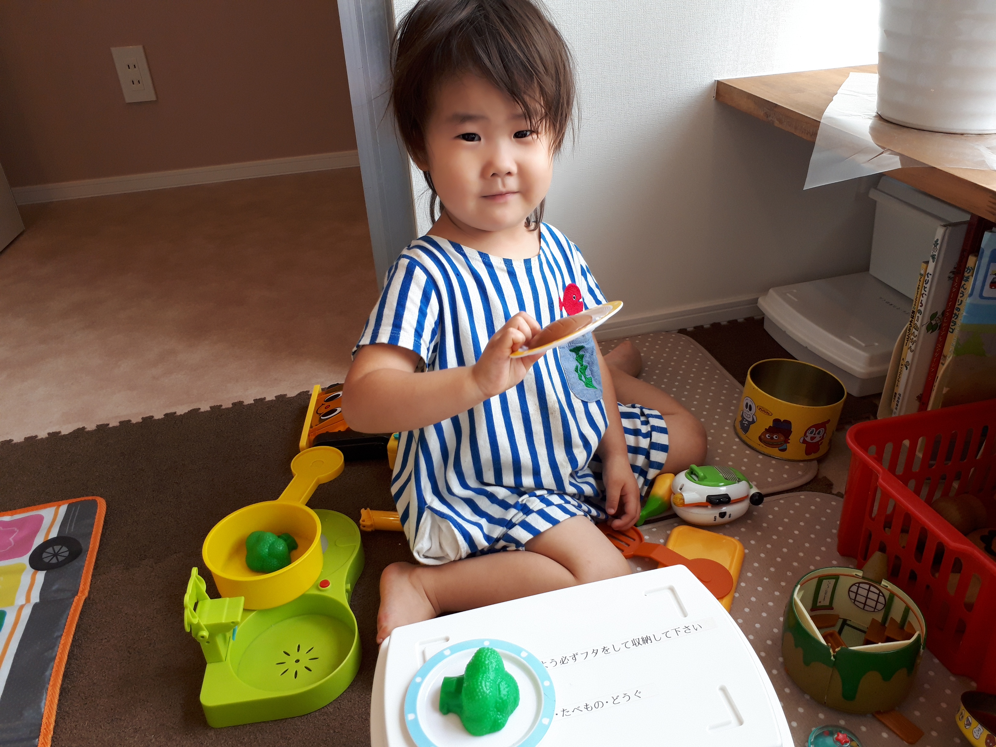 ママが施術中Aちゃんとおままごとをして遊び、おもちゃ入れのBOXを机にされて「ハンバーグどうぞ~」っと言って下さいました(*^-^*)
