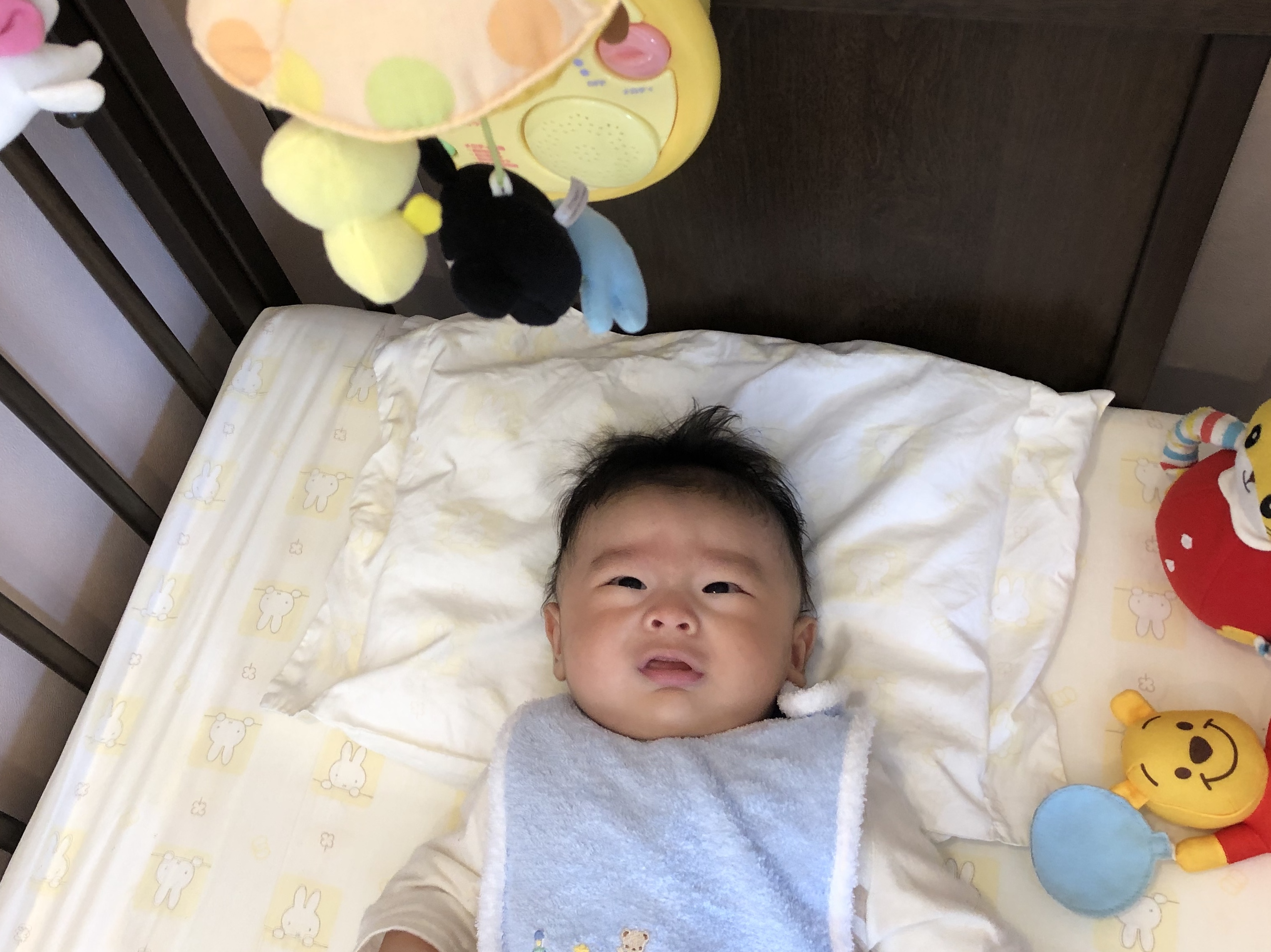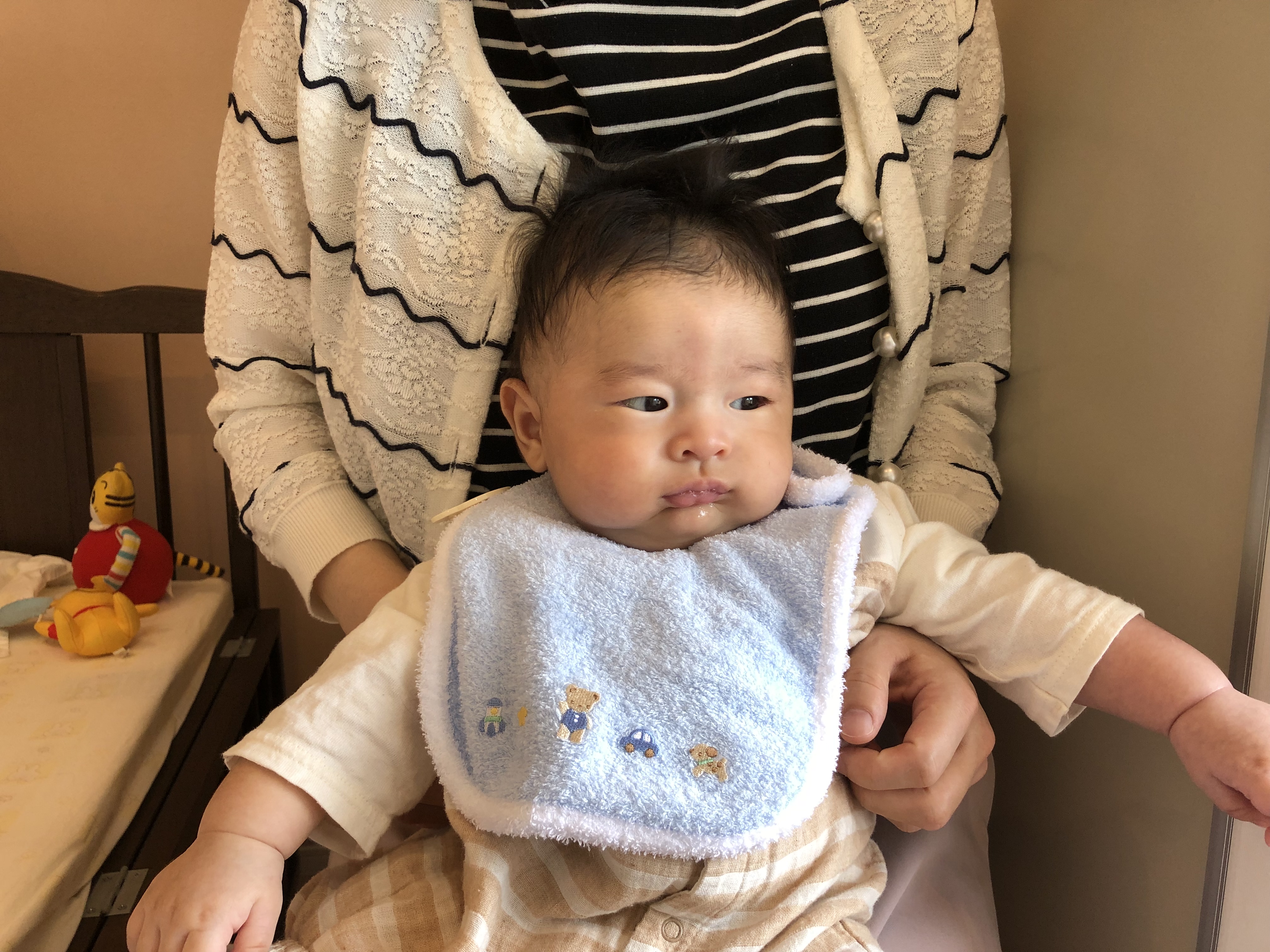 ベットで、メリーがクルクル回るのを一生懸命見ておられたり、ママに抱っこして座らせてもらうと、周りがよく見えるのでキョロキョロされながらご機嫌さんでした♡