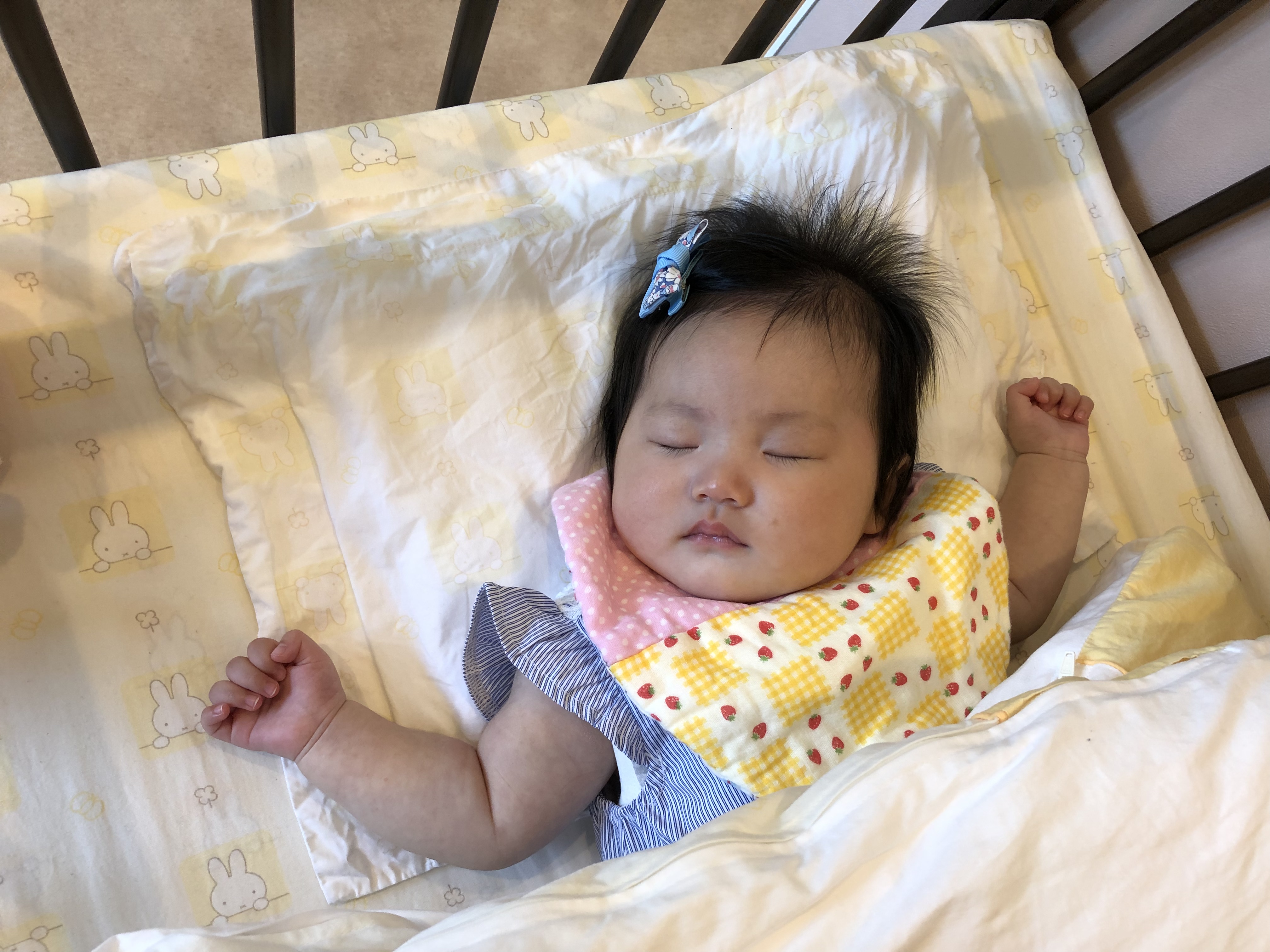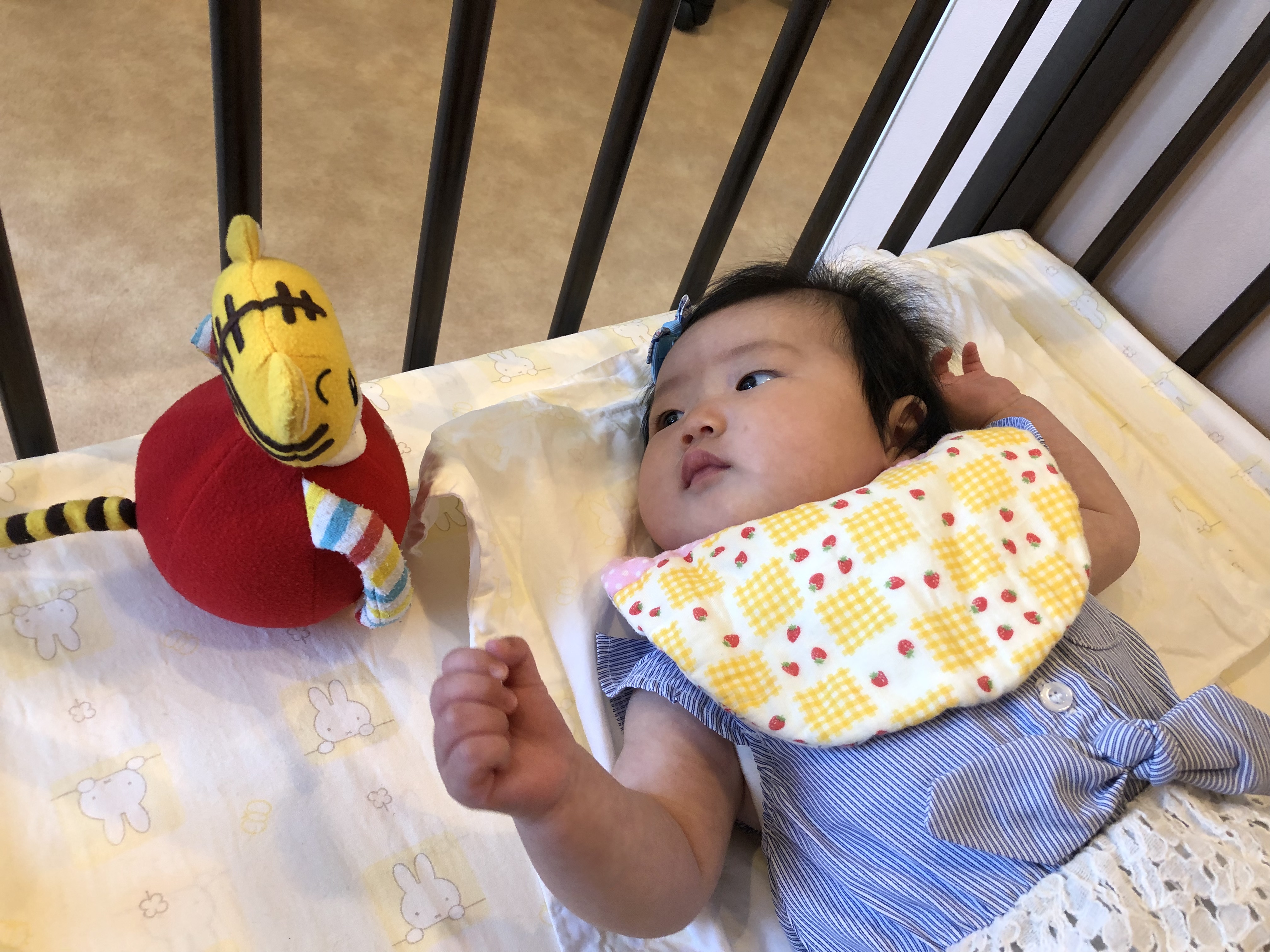 途中、目を覚まされすっきりされたご様子で、しまじろうのお人形さんを手で上手に揺らしながら遊ばれていました(^^♪