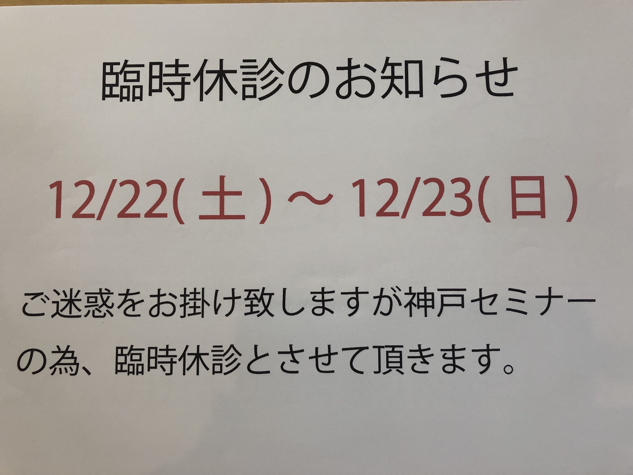 院長は、明日から今年最後のセミナーの為、神戸へ行かれます。