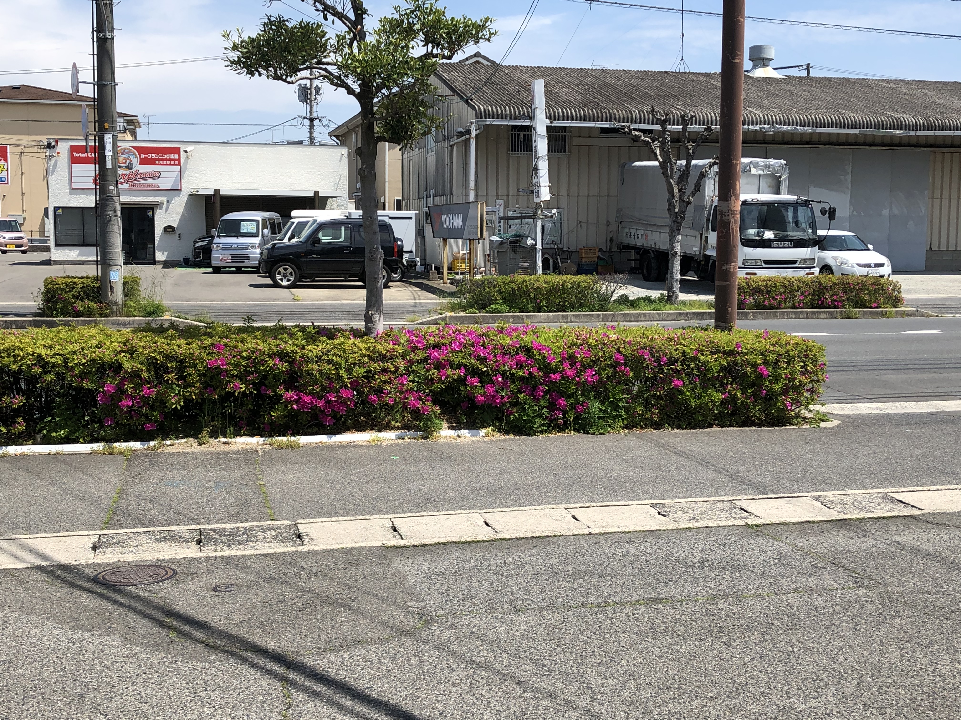 ポートカイロ前の道路のつつじの花が咲き始めました♡
