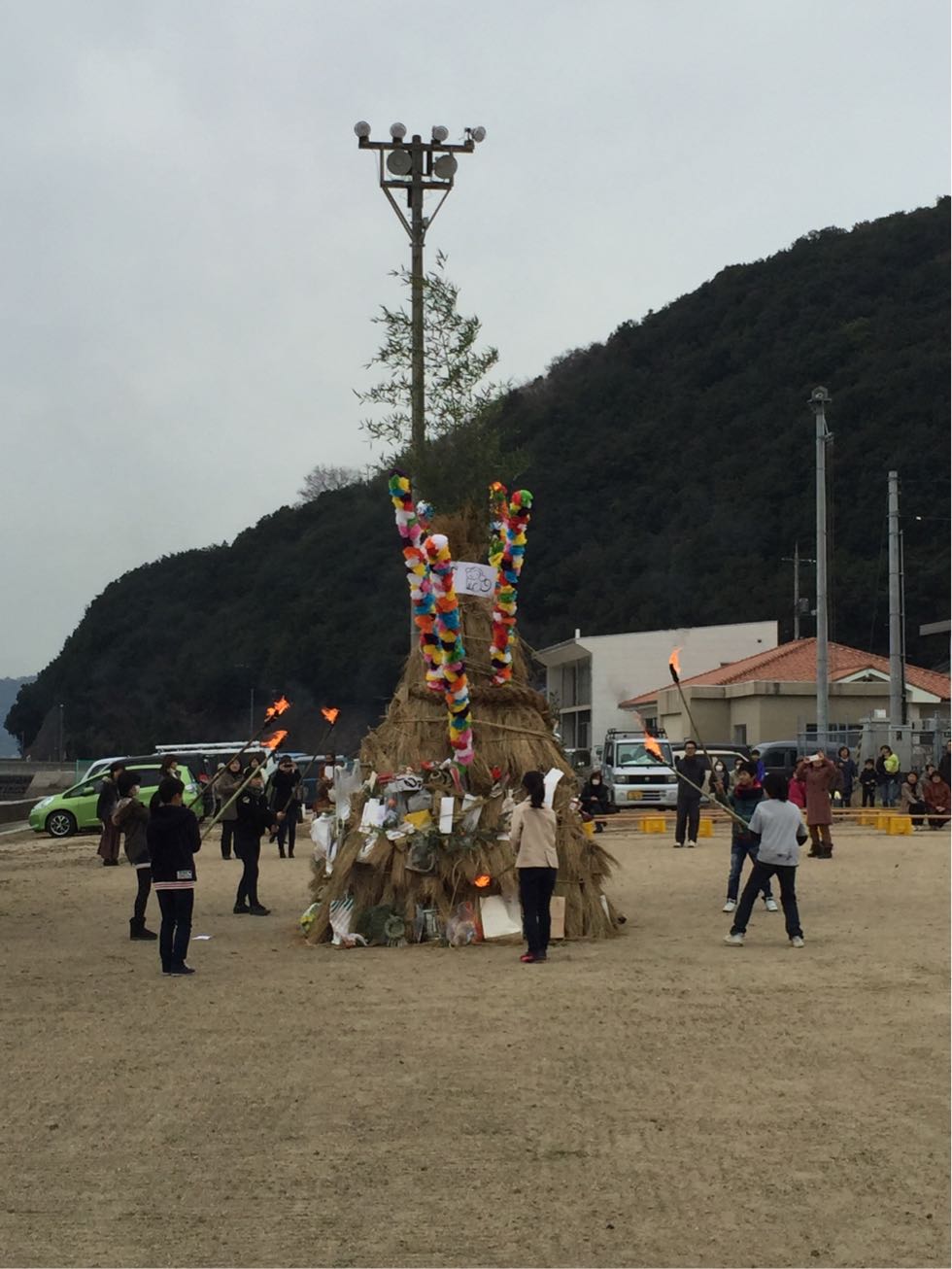 皆さま、ご存知のように小正月(1月15日)に、お正月飾りや書初めを持ちよって燃やす行事ですね。またお守りやお神札に感謝して燃やし、一年中の身体健康・無病息災・家内安全・五穀豊穣を祈願します。
