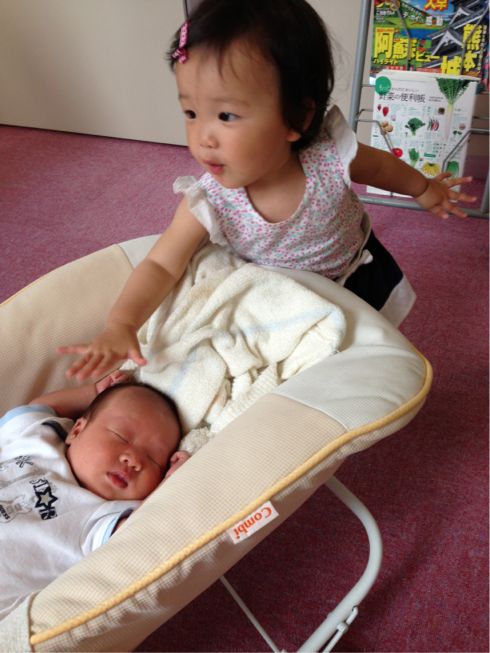 お姉ちゃんは生まれて来てくれた赤ちゃん、A君が気になるようで、ヨシヨシしています(^^)