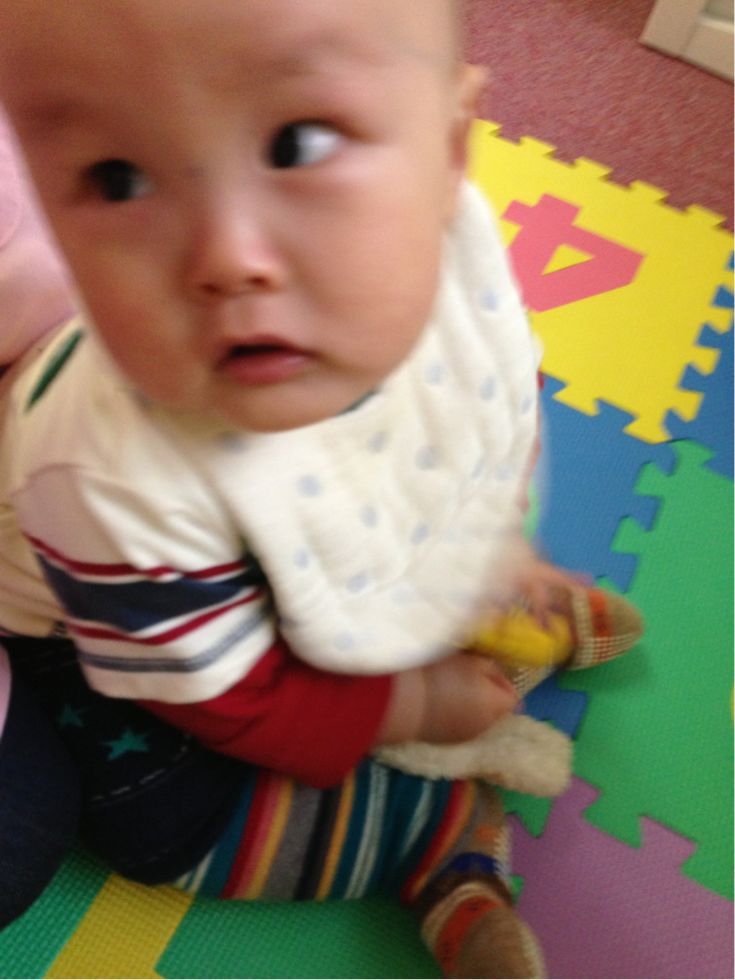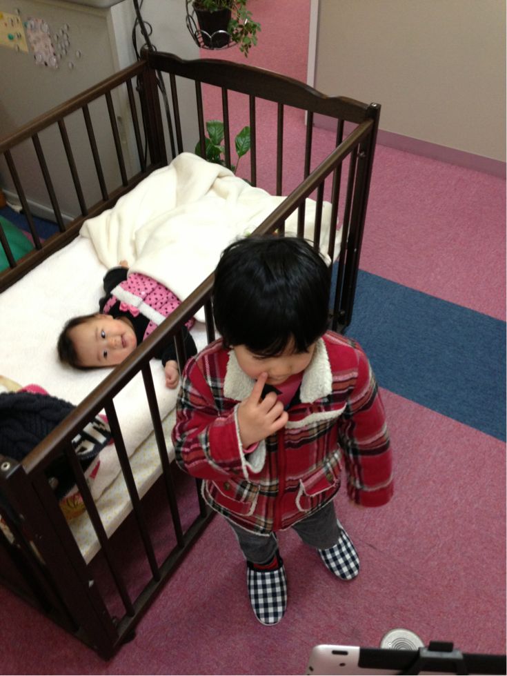今までは、赤ちゃんをみると固まっていましたが、今回はrちゃんから赤ちゃんに握手♪