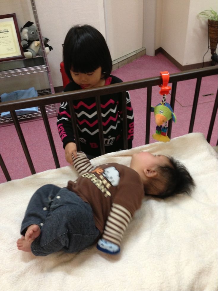 子供のカイロプラクティックでは、赤ちゃんの時の反応が残っているかなど、色々検査をしながら先生が施術をしています(^^)手を握られると、そのことを思い出しました♪