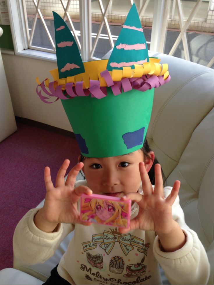 当園日ではないのに、幼稚園のスモックがお気に入りで、スモックを着てくれました(^^)
