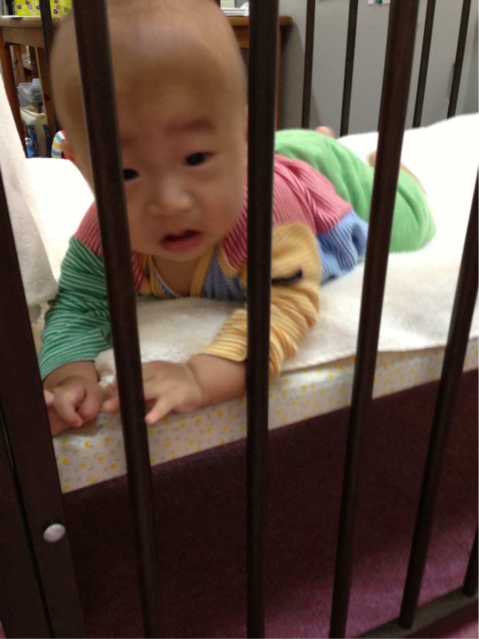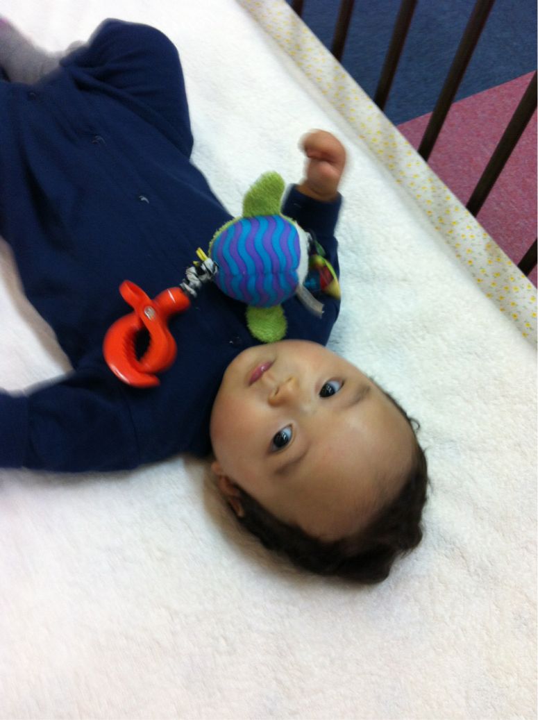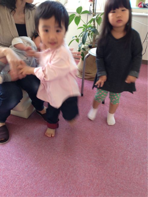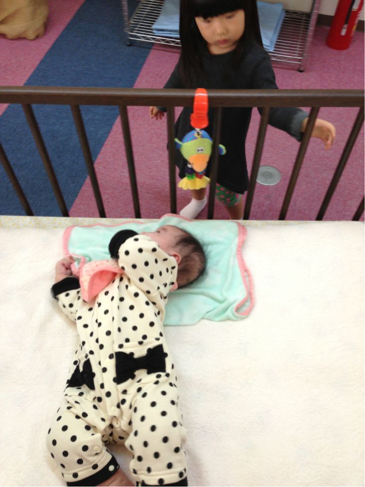 人見知りが始まり、涙くんでしたが、ベットに寝かせると遊びだしました。