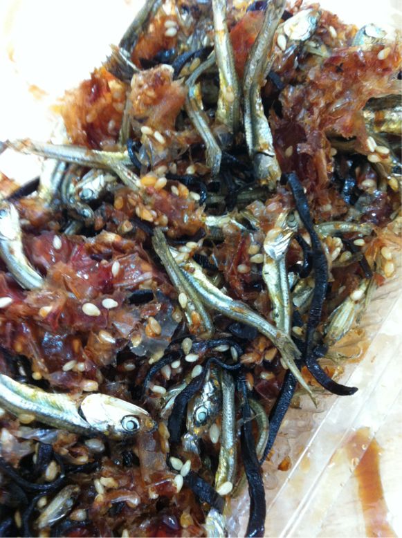 今日のお弁当はおばあちゃんの特性佃煮があるから、煮物を持って来ただけで、いりこがメインです