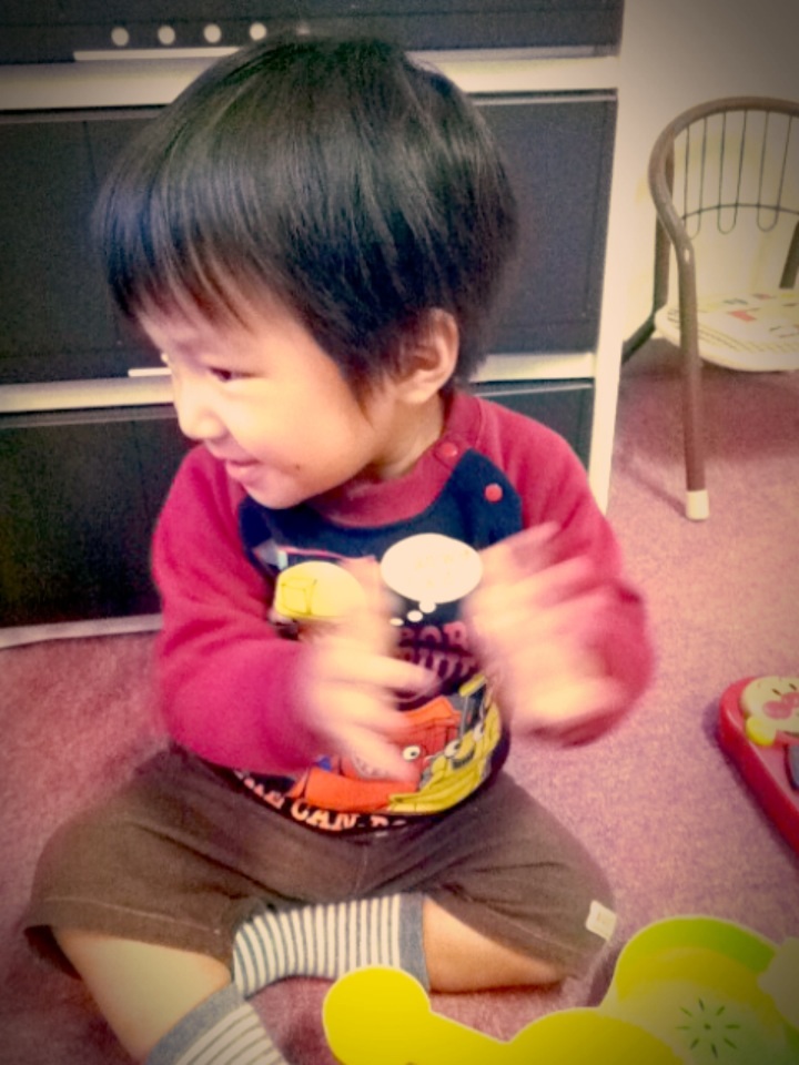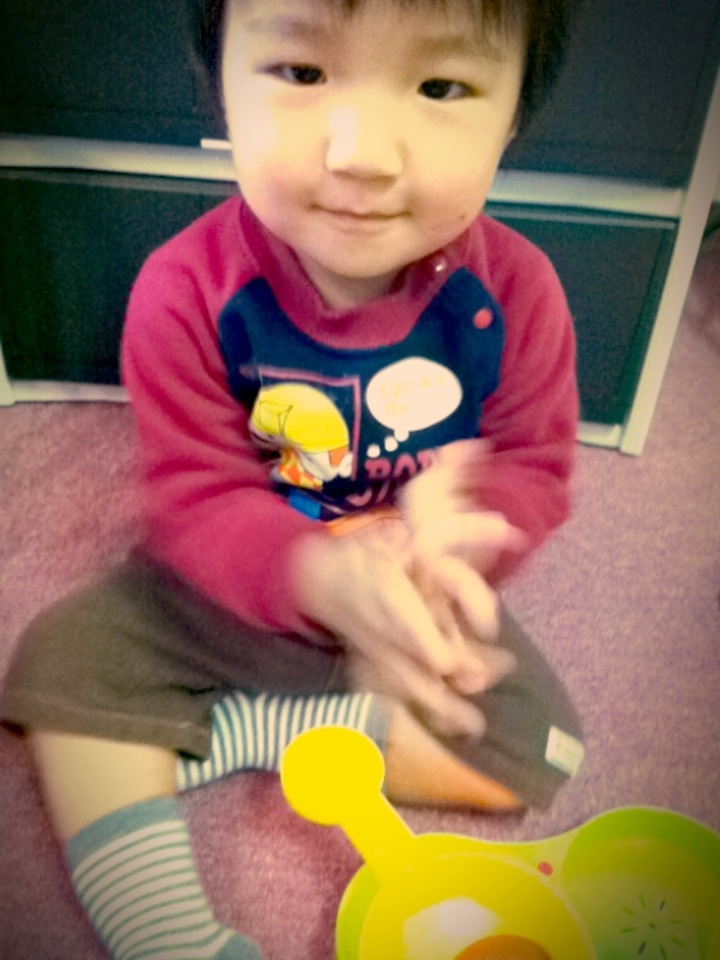 音楽が大好きなN君は、リズムに合わせて手をたたいて、リズムがバッチり合ってます
