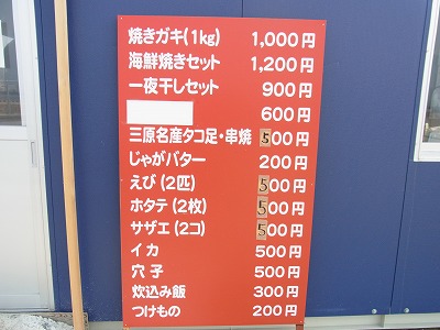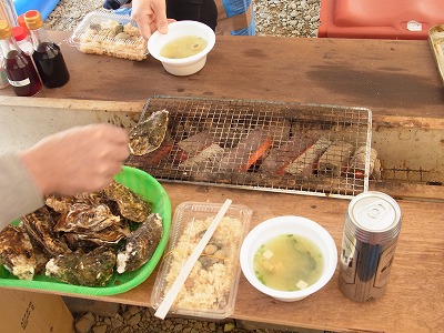 を300円で買い、各テーブルでカキ、デベラ、サザエ