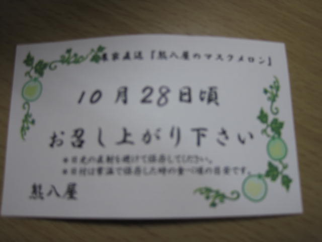 10月28日頃 お召し上がり下さい