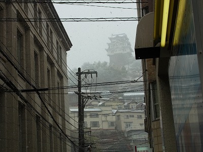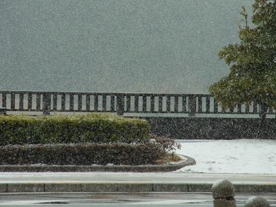 尾道の海岸通りで、降り続ける雪は珍しいです