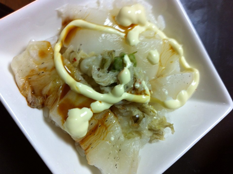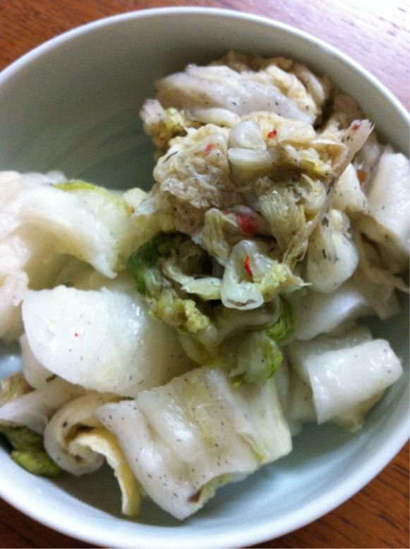 お漬物の上に、マヨネーズを少しかけて、お醤油も少したらしいただくと、とっても美味しよ~
