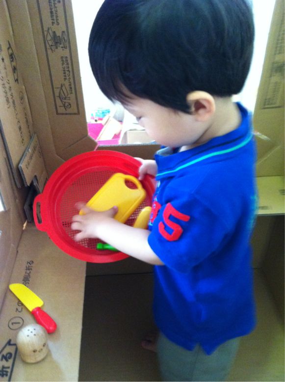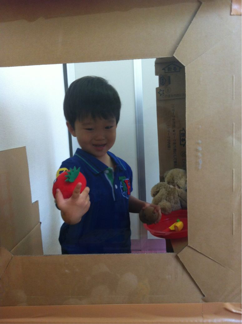 ダンボールハウスの中でお料理をするのが、k君の流行りです(^^)