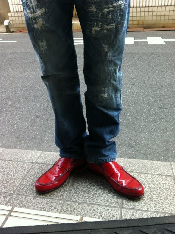 )帰りに、とても素敵な赤い靴を履きこなした旦那様がいました。