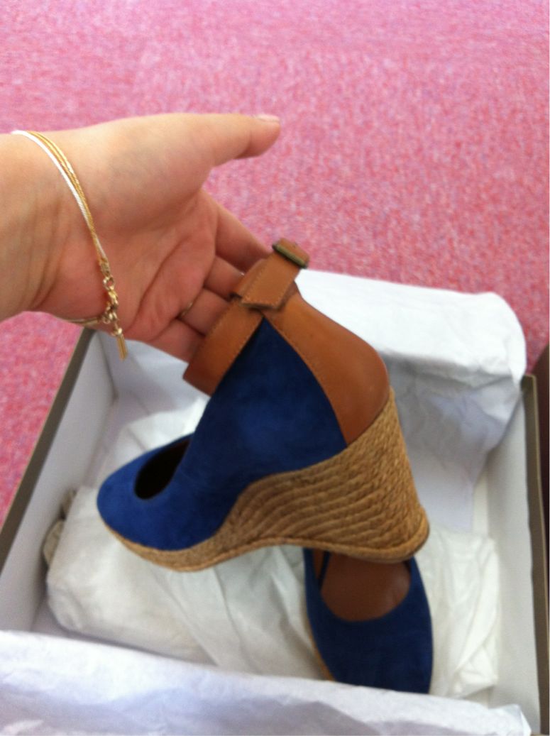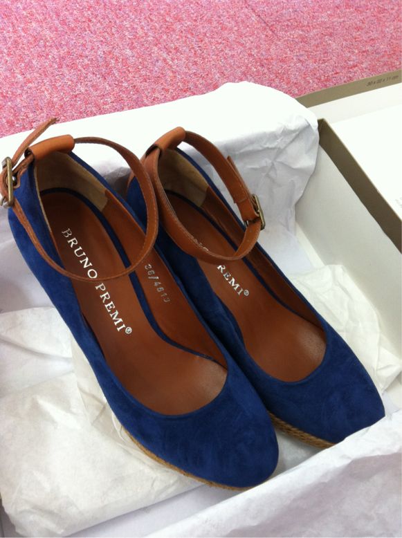 なんとも言えない落ち着いたネイビーのスウェード、キャメル色のストラップ…(^。^)