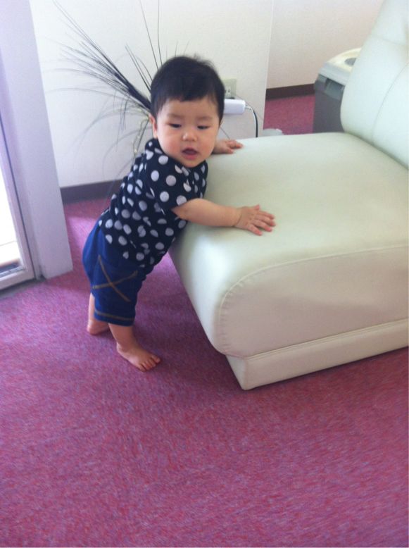 ハイハイして、つかまり立ちしてる