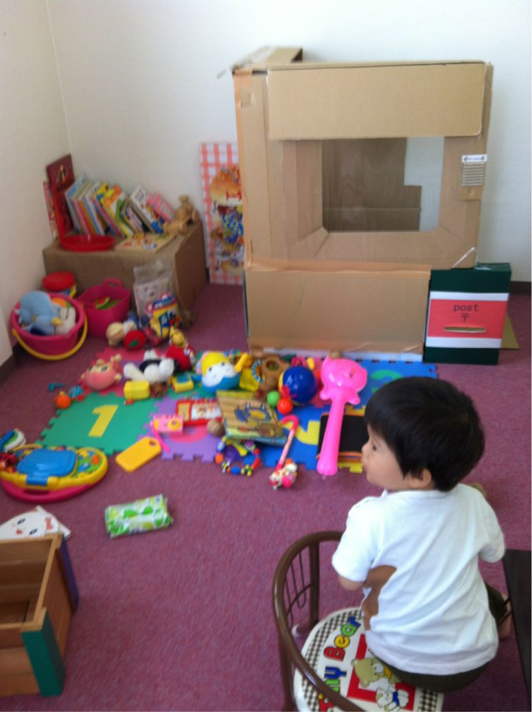 ダンボールハウスでも遊んで、お片付けも一緒にしてくれました