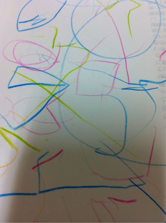 お絵かきをしたRチャンの、色づかい、形などバランスがよくて、なんだかお洒落な模様みたい