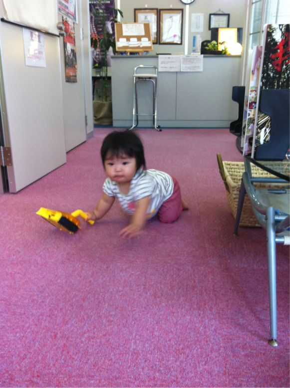 待合室もハイハイでお掃除してくれました