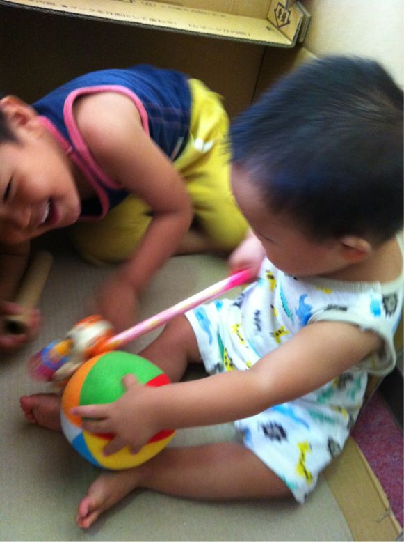 S君と、M君はダンボールハウスに夢中