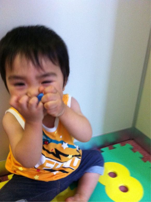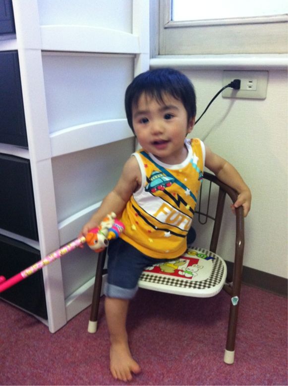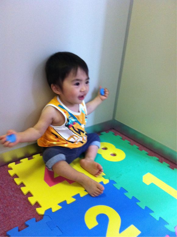 ママと一緒にパパの治療を待てたニコニコ王子は元気いっぱい