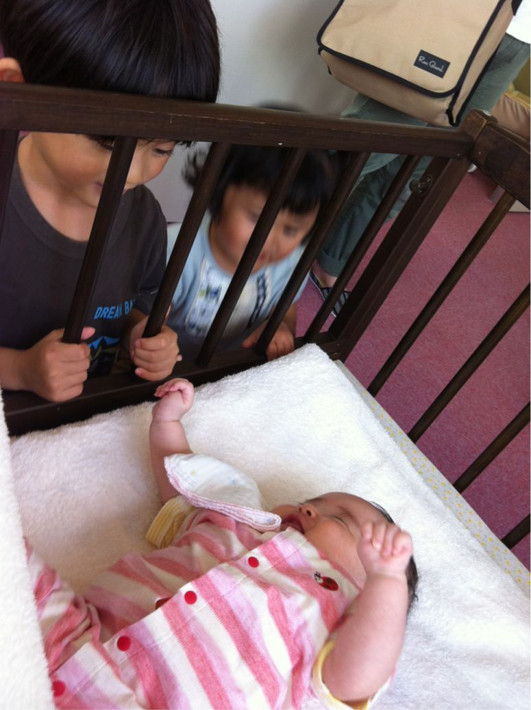 お兄ちゃんや、お姉ちゃんを見て笑顔です