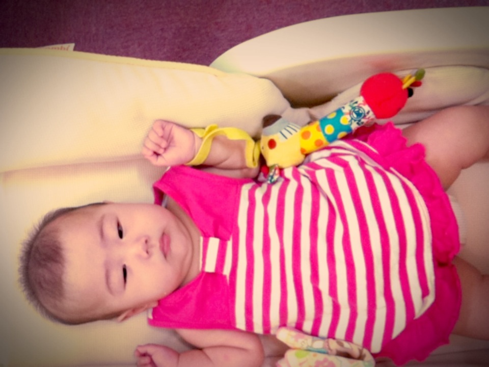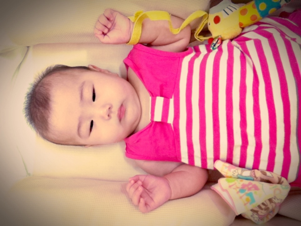 仰向けになると腰が痛いママ、少しずつですが仰向けになることもできてきました