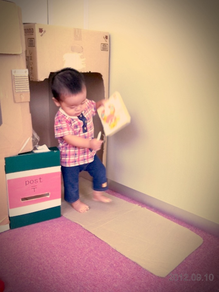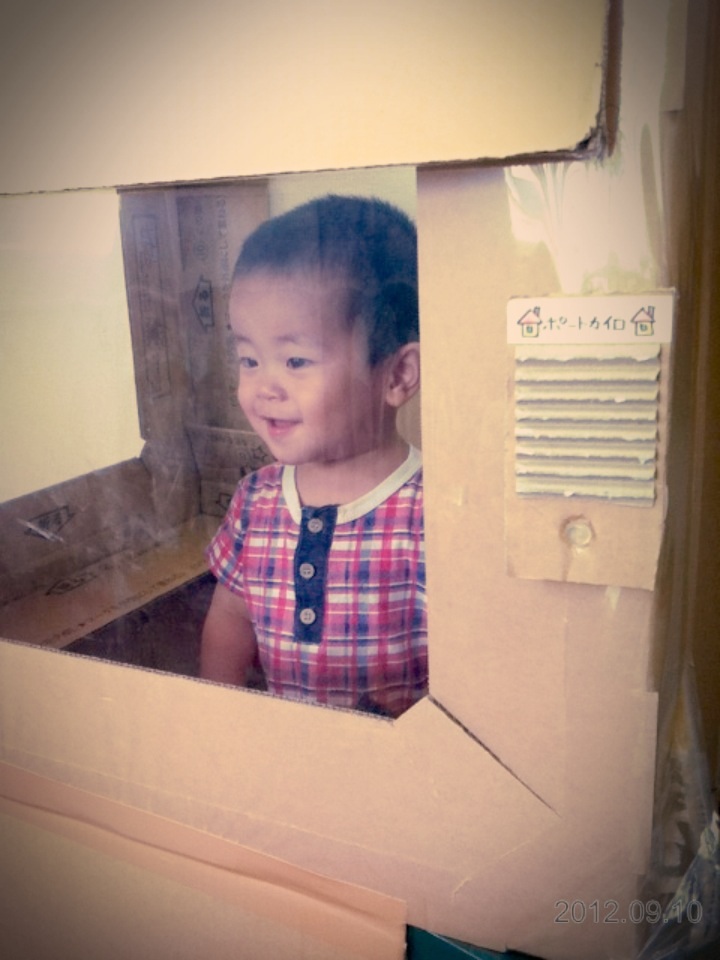 ダンボールハウスの入口で頭をぶつけていたR君も、上手にかがめるようになりました~