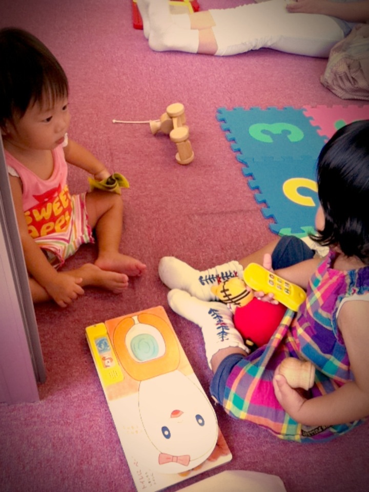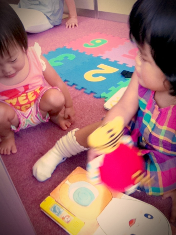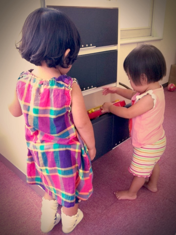 Sちゃんの方が、Rちゃんに積極的でおもちゃを渡したり、一緒に遊びました