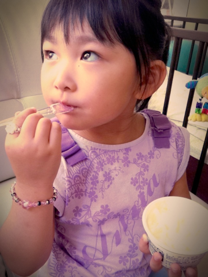 いつもの乾物屋さんで、アイスクリームをもらったku~ちゃん