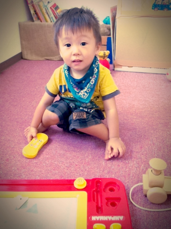 最初はママが治療に入ると不安になったI君でしたが、おもちゃが気になっておもちゃに夢中