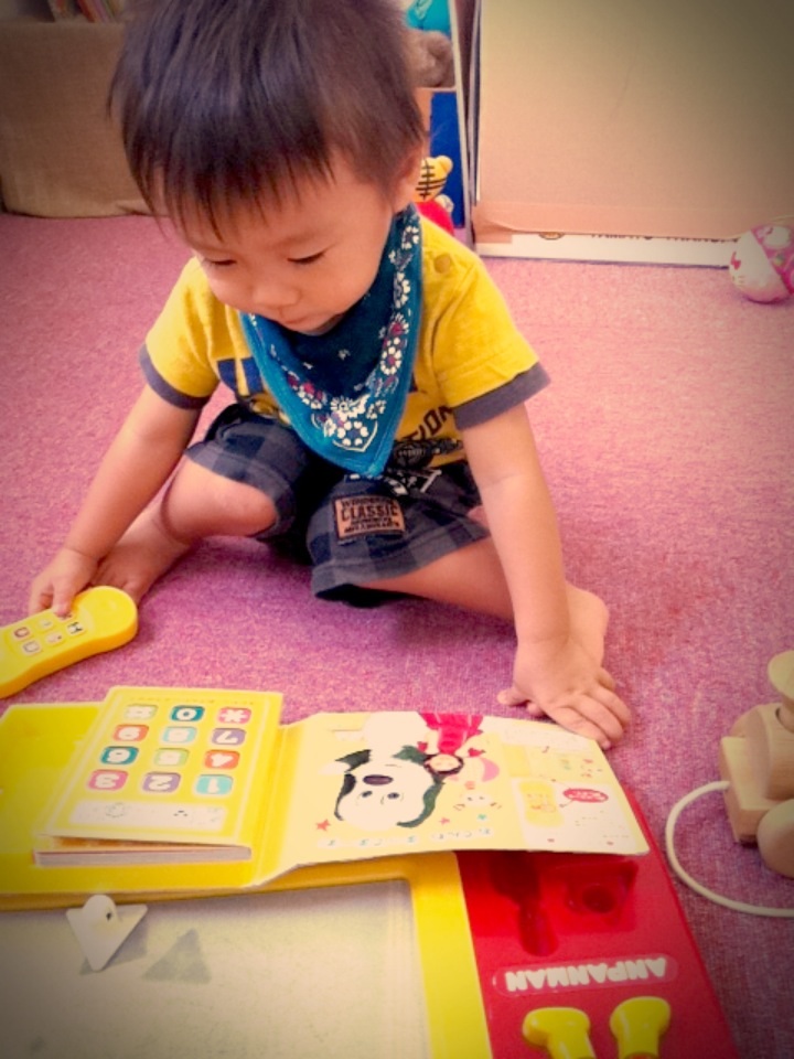 Wちゃんも大好きな電話の本をI君に渡すと、I君もお気に入り