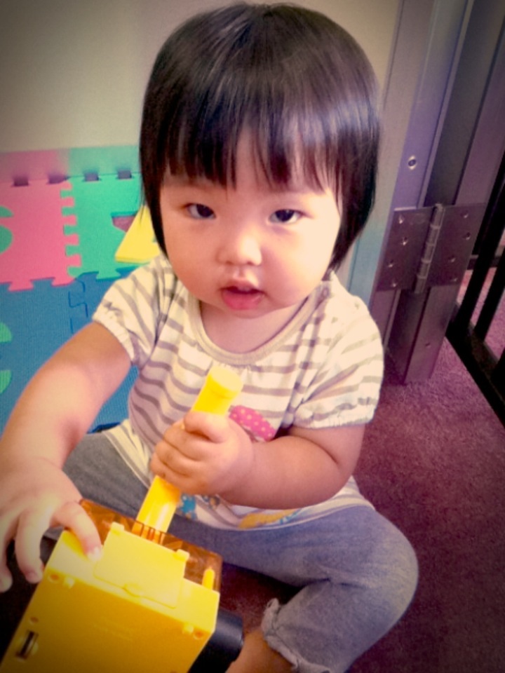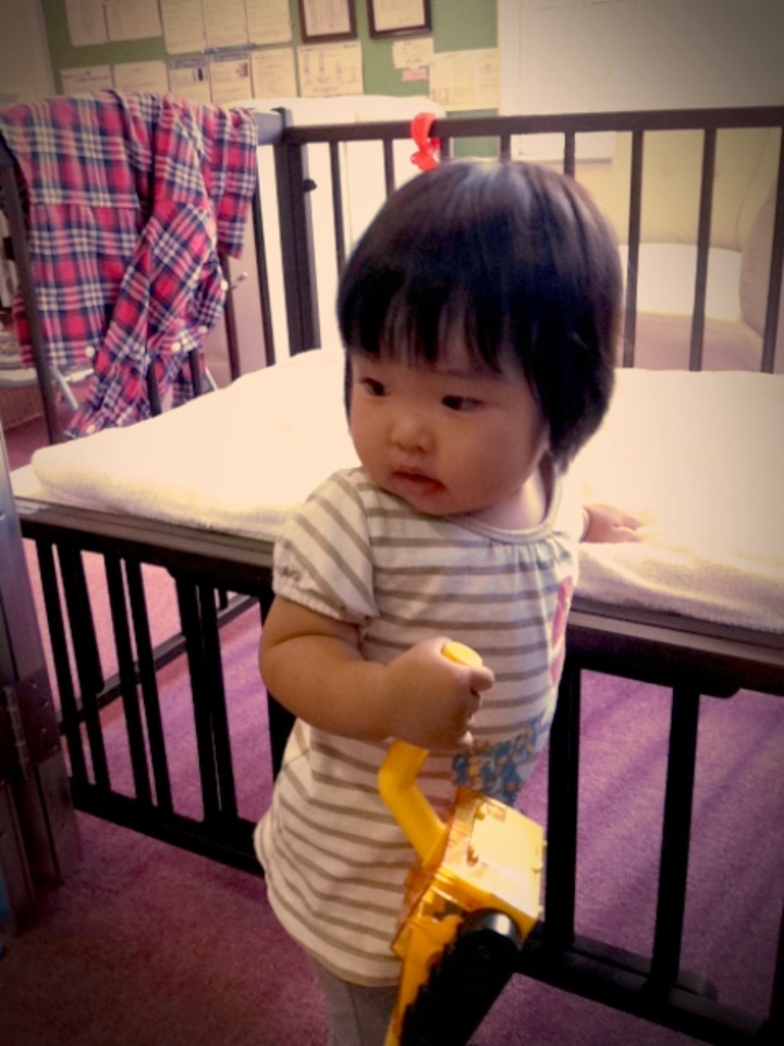 Nちゃんは、キッズルームにあるおもちゃに大興奮