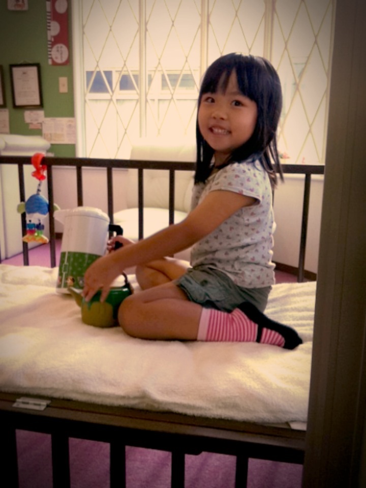 Hちゃんは、Nちゃんにお茶を飲ませてあげたりとっても優しいお姉ちゃん