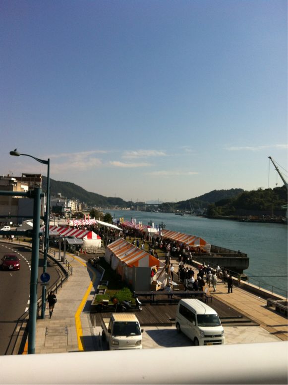 ku~ちゃんの発表会は行けませんでしたが、ポートカイロ前の芝生広場で開催されている、ぶちうま!おのみちには、休憩時間に少しだけ覗いて来ました