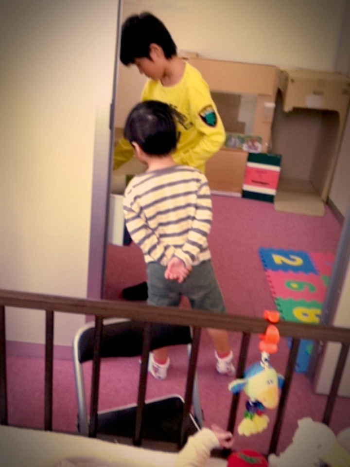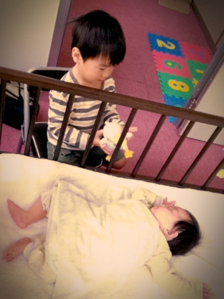 K君は赤ちゃんが大好きでポートカイロに来らすぐに赤ちゃんの所に椅子を持って行って見ているK君