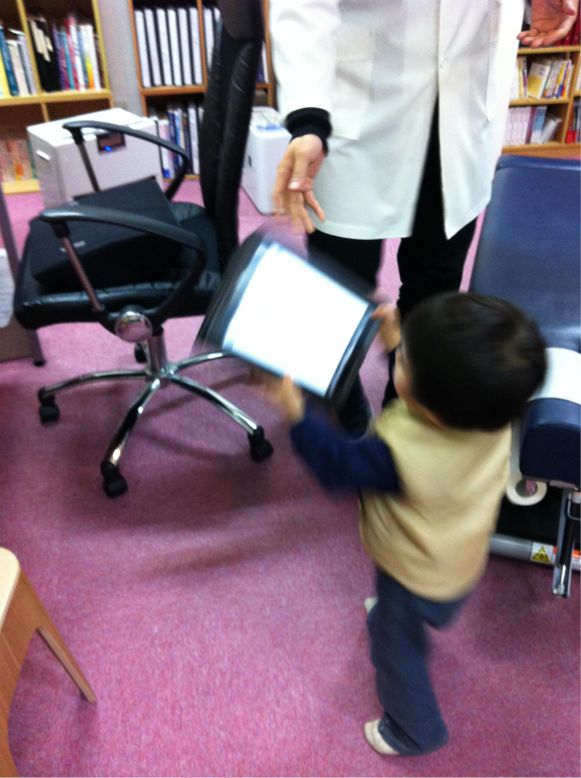 施術室にもスタスタと入って、先生にipadをもらっています