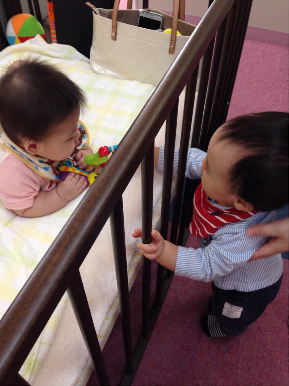 Yちゃんとってもいい子に寝ていたり、起きたりとしていました(^^)