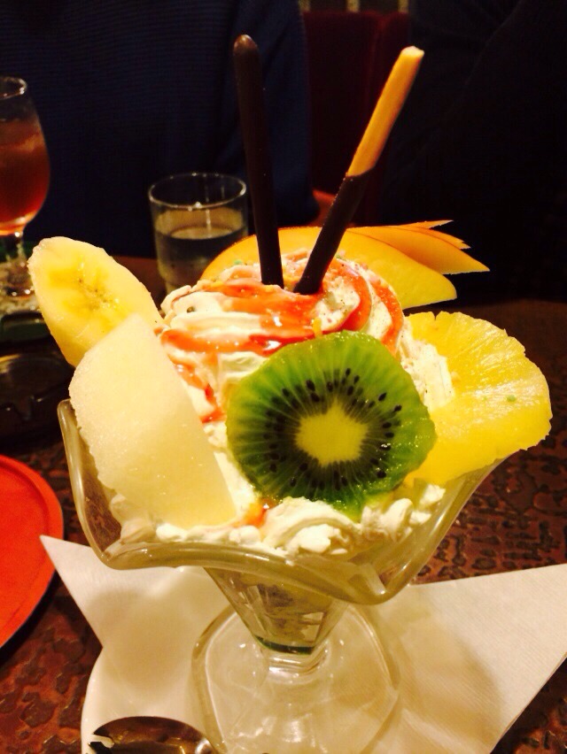 パフェもボリューム満点!ポッキーは少し湿気ていたので残念です(*_*)