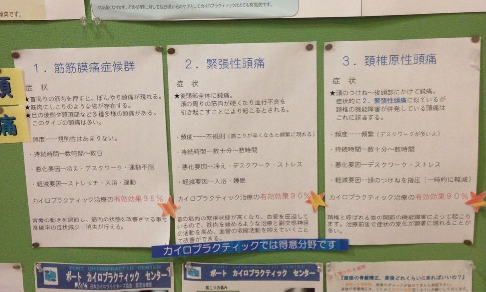 ポートカイロでは頭痛で悩んでいらっしゃる方も来られます。