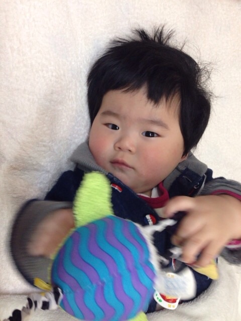 ママの治療中はベビーベッドにあるおもちゃに興味津々のSくん☆