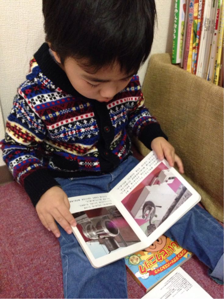 お兄ちゃんTくんはトーマスが大好きで、トーマスの絵本を沢山見ていました(^^)
